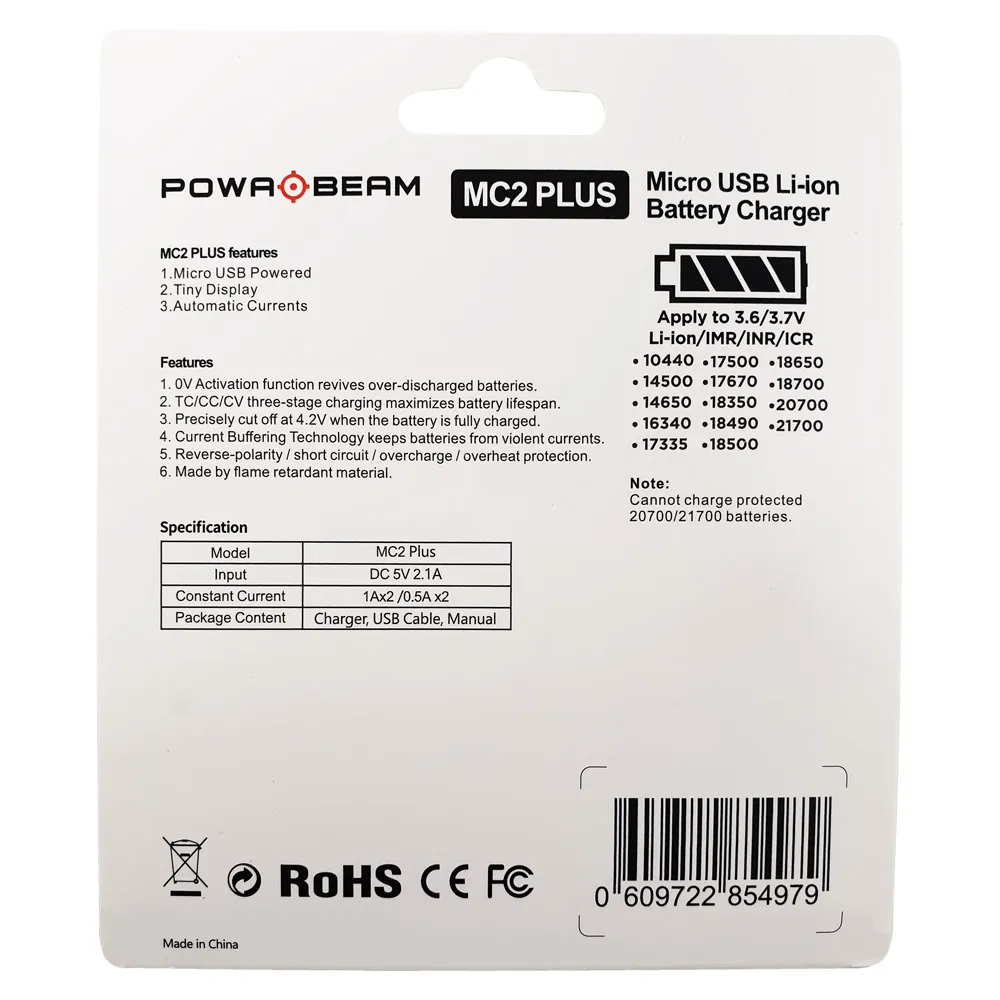 • 10440/14500/14650/16340/17500/17670/18350/18500/18650/18700/20700/21700 (will not charge protected 20700/21700)