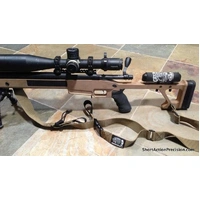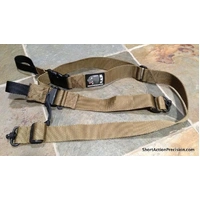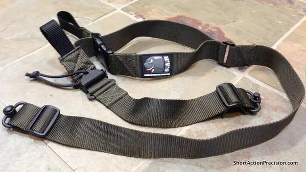 The Short Action Precision Positional Rifle Sling is an evolution of years of shooting experience, with competition and unsupported positional shooting in mind. The sling has a proprietary noose cuff that tightens securely around your arm for a solid foundation. The quick adjust front strap lets you adjust for the perfect tension or elevation. When you are done taking a nice, stable kneeling or seated shot, you can instantly exit the arm cuff with a quick escape buckle. Rugged and reliable for carrying and shooting. Comfortable 1.5" wide HD nylon webbing construction. Made by SAP in the USA with pride.