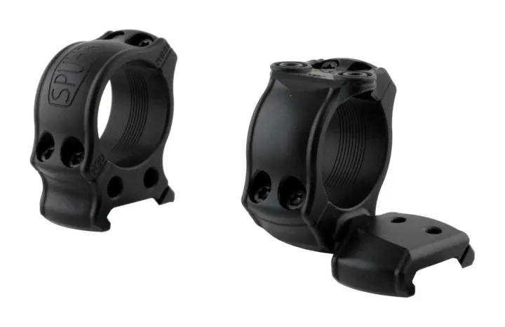 Aesthetic hunting rings for 30 mm tube on Picatinny and Weaver bases/rails. Can be optioned with no interface mounts (standard ring caps), 1 interface mount and 1 standard ring cap, or 2 interface mounts.