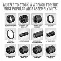 Central to this toolkit is the Master-Fit® 13-Piece AR15 Crowfoot Wrench Set, epitomizing the fusion of advanced technology and robust construction. The torque wrench, with its wide range of 10 to 150 foot-pounds, allows for precise application of torque to all relevant components. The set includes specialized crowfoot wrenches, meticulously designed for an exact fit on A2 components, free-float barrel nuts, muzzle devices and castle nuts. These wrenches are not only functional but durable, thanks to their titanium-coated stainless steel construction that ensures longevity and reliability.